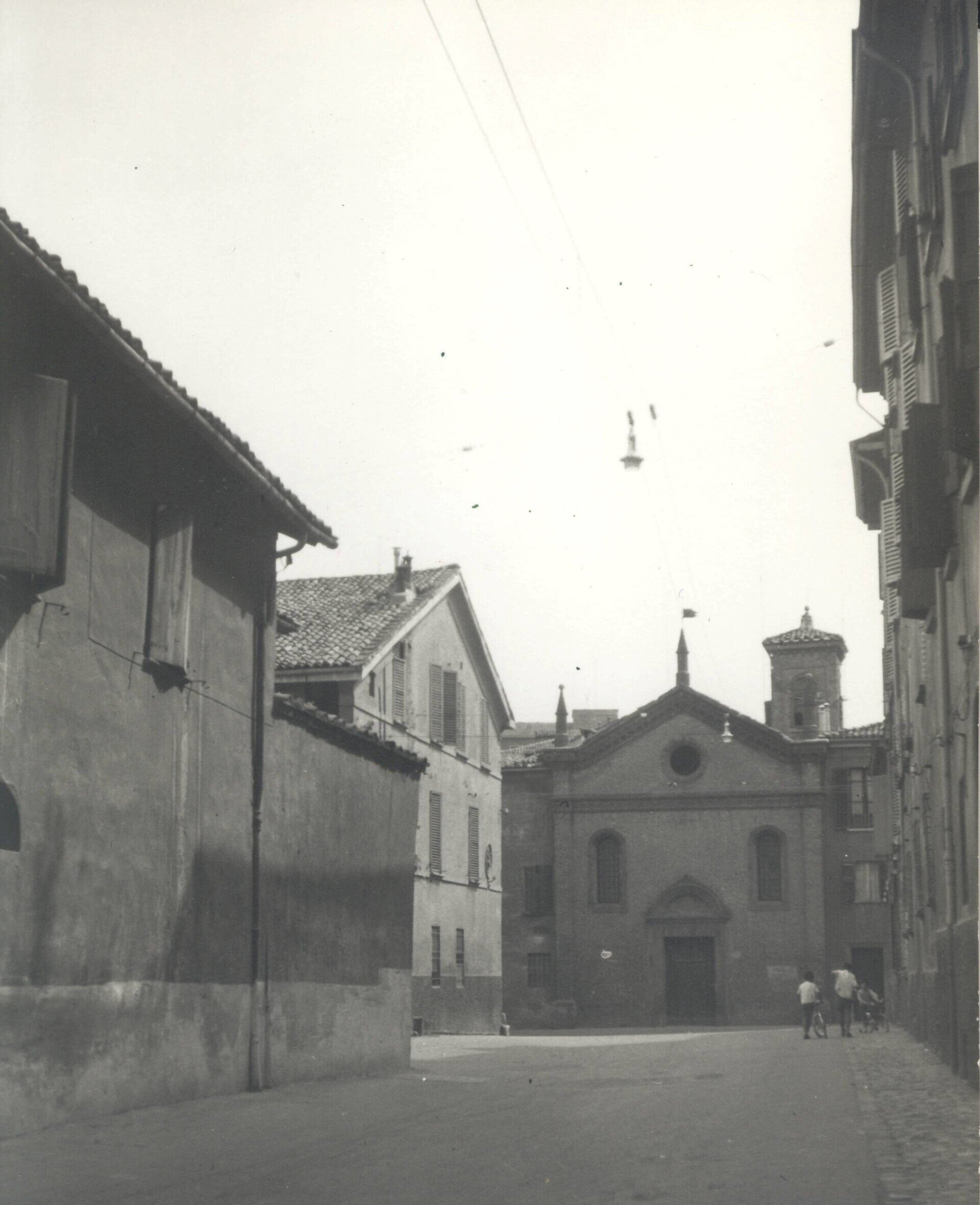 In seguito, vi si insediò una confraternita di laici che si dedicava all'assistenza dei bambini bisognosi e abbandonati, intitolata a Santa Maria degli Angeli, titolo che poi passò anche alla Chiesa. La Confraternita fu soppressa nel 1798 in seguito alle leggi Napoleoniche, ma la Chiesa rimase aperta al culto ancora per qualche anno. Sul finire dell'Ottocento la facciata venne restaurata da Edoardo Collamarini: si trattò della prima ristrutturazione di un edificio antico progettata dal famoso architetto, che ridisegnò interamente la facciata ispirandosi a uno stile romanico. Il restauro venne portato a termine da Alfonso Rubbiani nei primi anni del ‘900. Questi interventi hanno riportato la facciata al suo presunto aspetto originario, con i mattoni a vista e le eleganti forme goticheggianti in risalto, grazie alla ricostruzione del cornicione in cotto che decora l’occhio del timpano e al ripristino delle antiche bifore, sostituite nel tempo da aperture di forma rettangolare. Da metà Ottocento la Chiesa ha ospitato attività differenti, spesso legate all’arte: fu atelier degli scultori Enrico Barberi e Tullo Golfarelli, laboratorio di maestranze che lavoravano il legno, studio di architetti, per diventare nel 1982 sede del nostro laboratorio.