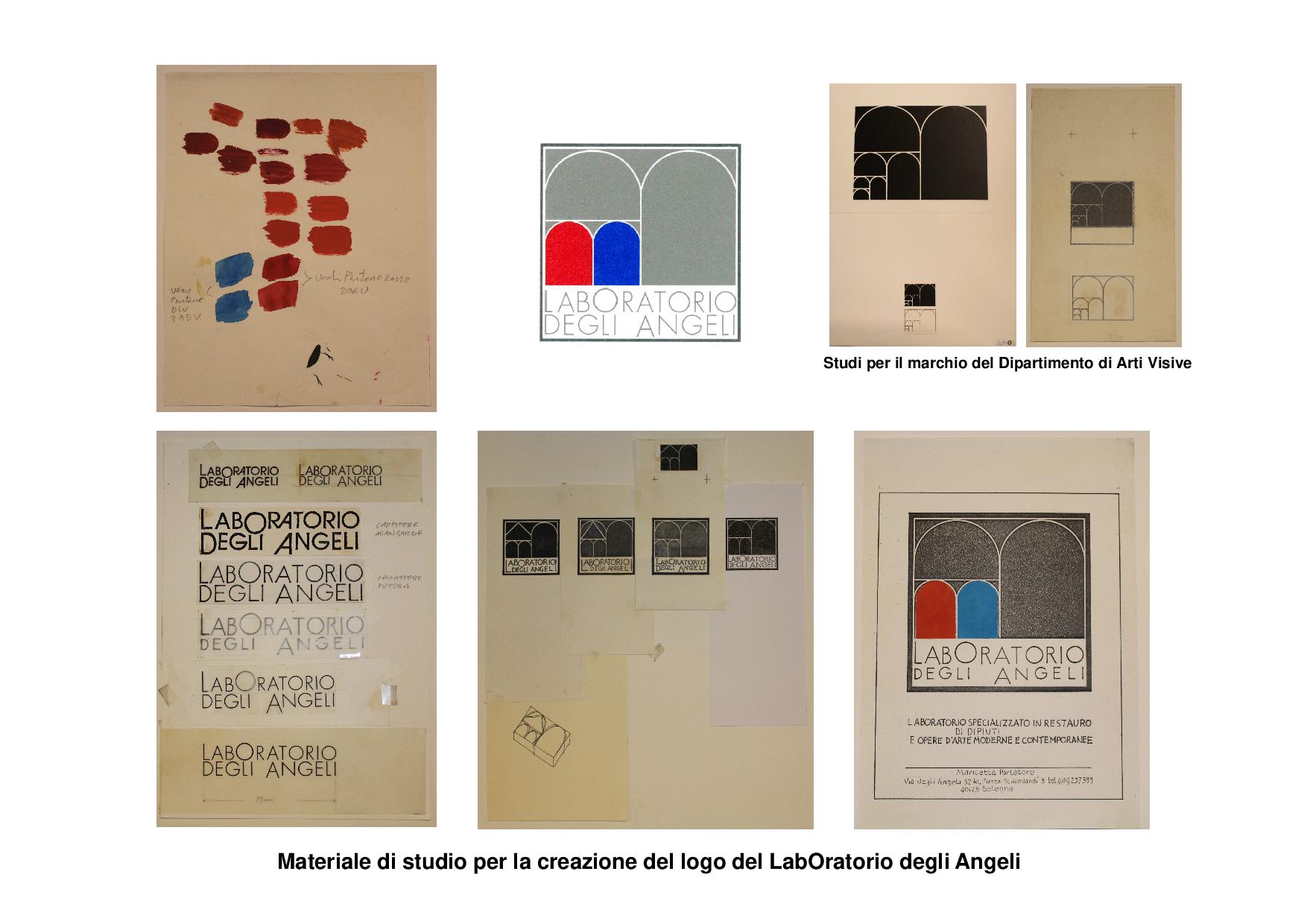 “Nel 1983 mi fu richiesto dal prof. Renato Barilli di studiare un marchio per il nuovo Dipartimento di Arti Visive dell’Università di Bologna. L’Università alla fine decise di rimanere fedele al marchio storico, e quindi non venne adottato. Maricetta Parlatore, allora titolare del LabOratorio degli Angeli, era alla ricerca di un proprio marchio. Quando vide quello del dipartimento mi chiese di modificarlo adattandolo per il suo laboratorio di restauro. Questa è la storia dell’attuale marchio del LabOratorio degli Angeli”.